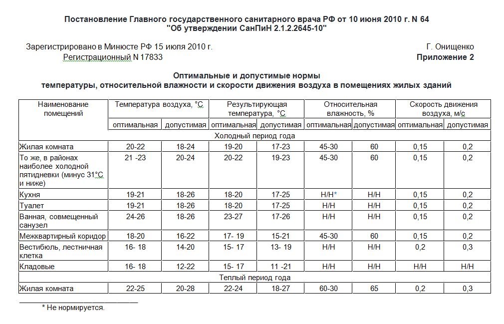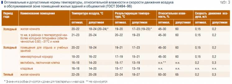 La température dans l'appartement peut être réglée au niveau de l'état.En Russie, il existe un document très intéressant qui réglemente les valeurs normatives des paramètres du microclimat intérieur, et il s'appelle GOST 30494-2011.