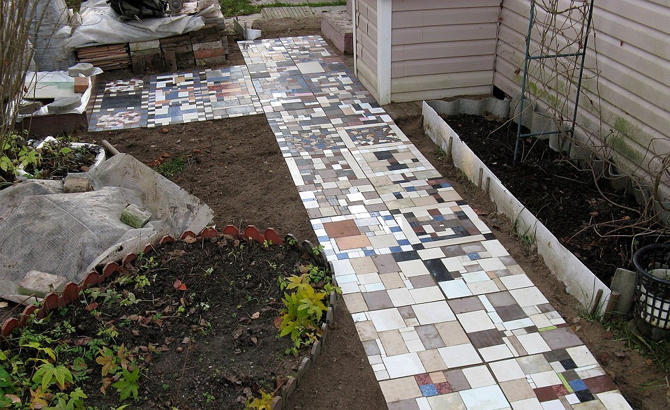 - Une allée de tuiles cassées est une excellente solution si vous avez récemment eu une rénovation et qu'il reste beaucoup de matériaux endommagés ou inutilisés !