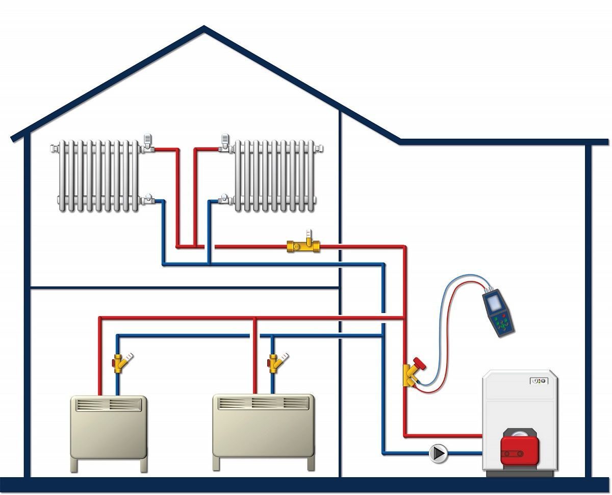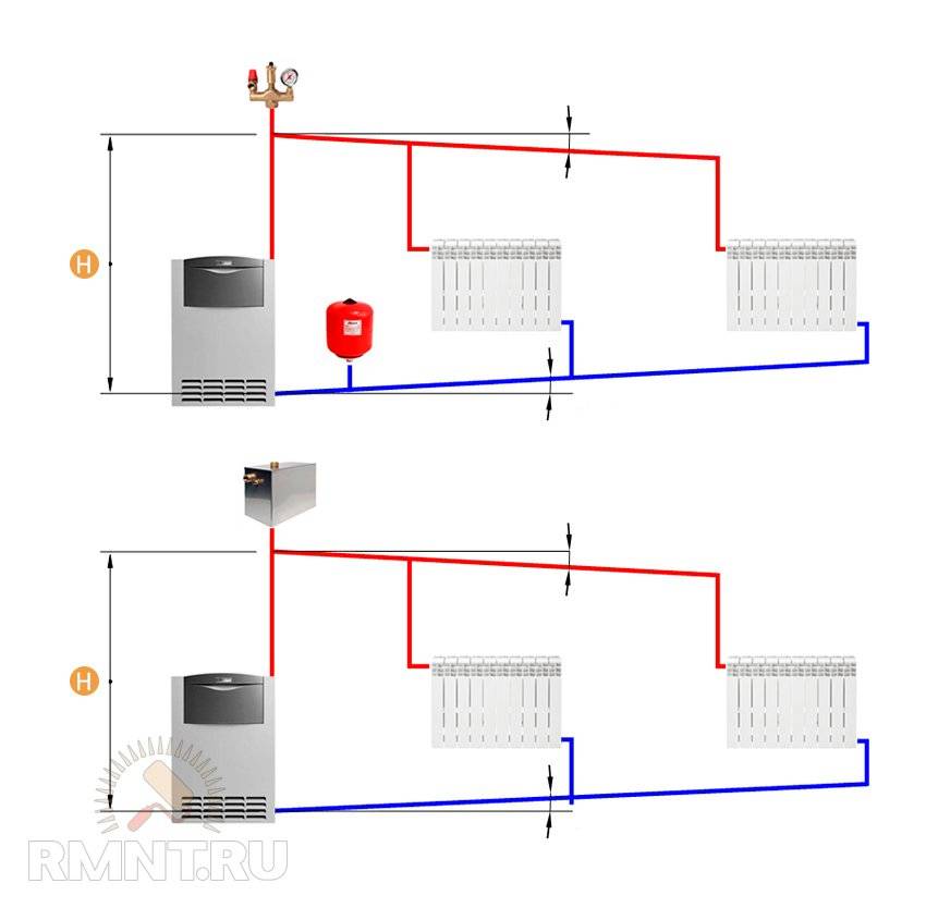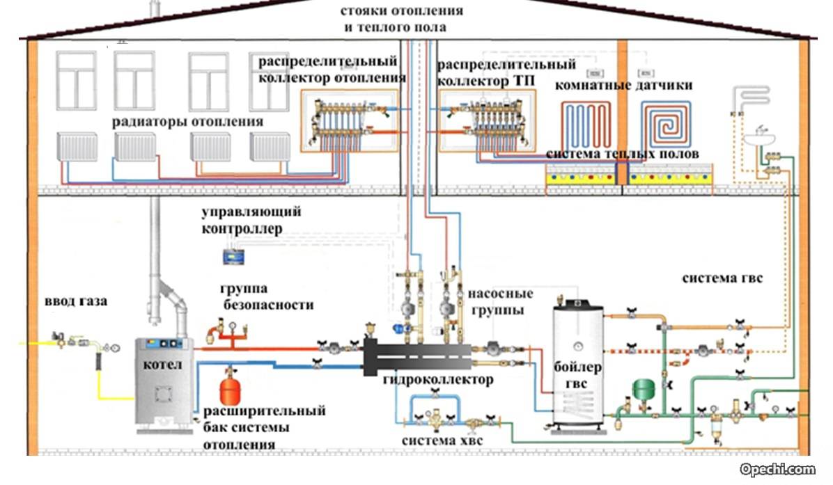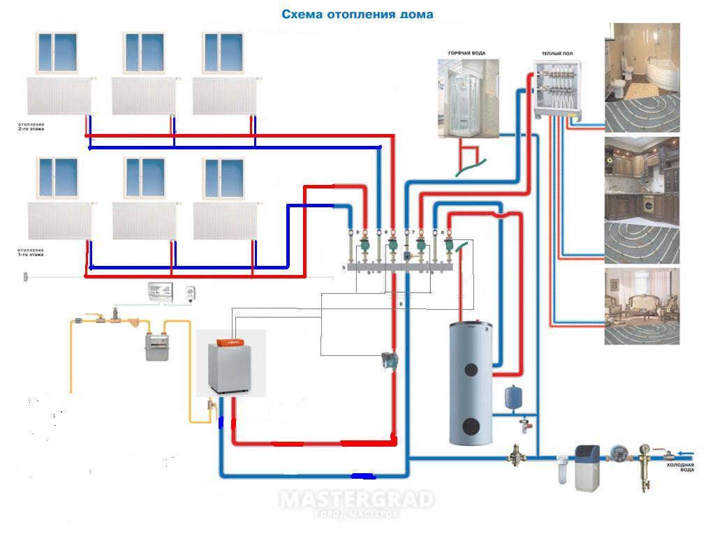 Le schéma de chauffage de la maison avec une chaudière à gaz.