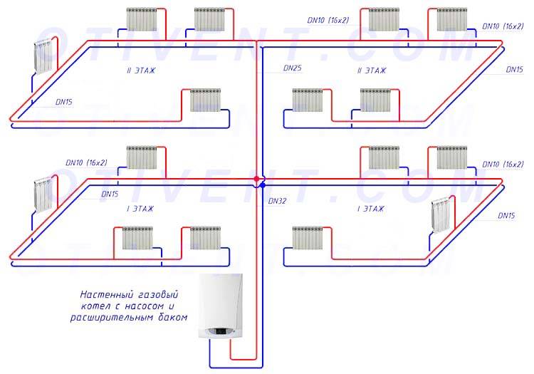 Selon la méthode de tuyauterie, le chauffage d'une maison de campagne est divisé en: