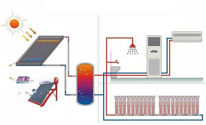 En période de gel, les systèmes solaires fournissent de l'énergie pour le chauffage de l'air, de la vapeur ou de l'eau, en été ils fournissent de l'eau chauffée