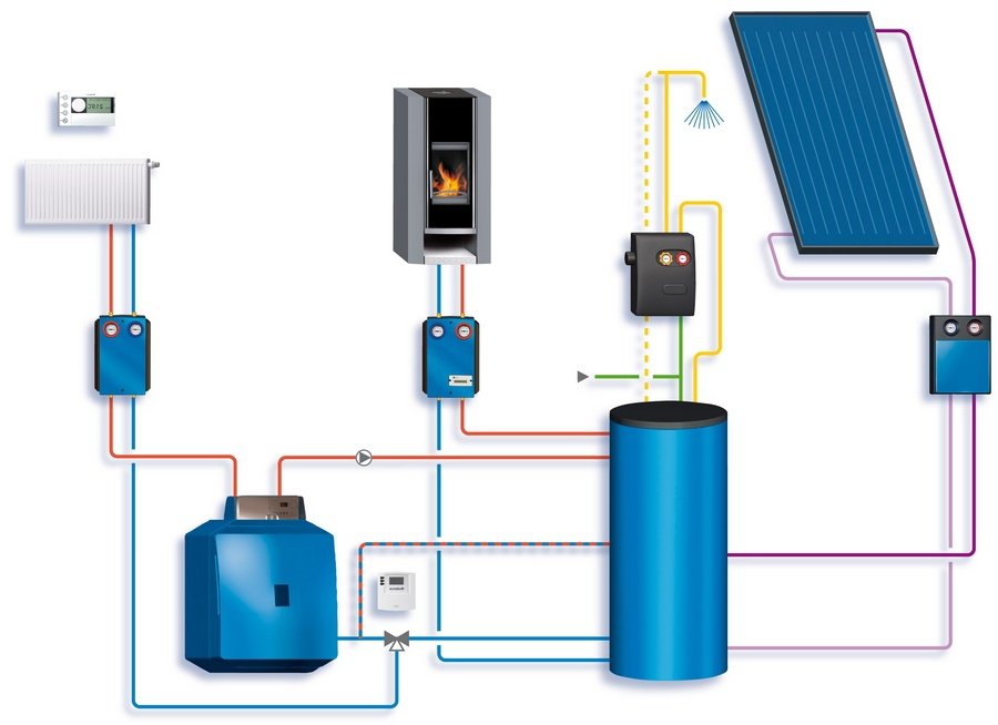 - circuit de chauffage de l'eau, composé de tuyaux et de radiateurs.