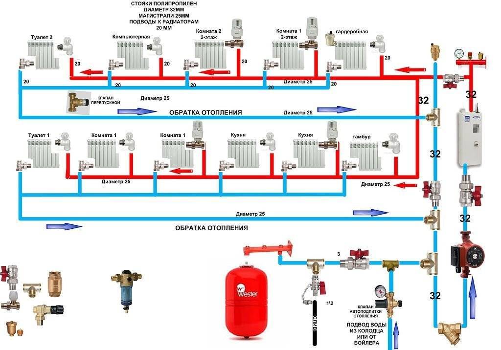 Il vaut mieux qu'il soit un peu plus étroit que l'autoroute principale. Pour augmenter l'efficacité des systèmes de chauffage au quotidien, des accumulateurs de chaleur ou des dérivations sont utilisés.