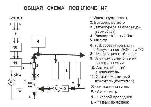 Les éléments chauffants eux-mêmes sont connectés au réseau de la manière suivante: un cavalier est connecté à l'une des extrémités de chacun des radiateurs électriques tubulaires, les phases sont connectées à leur tour aux trois autres libres: L1, L2 et L3. Une attention particulière doit être portée à l'installation de la mise à la terre: les propriétaires inexpérimentés la connectent souvent à la phase zéro du câblage.