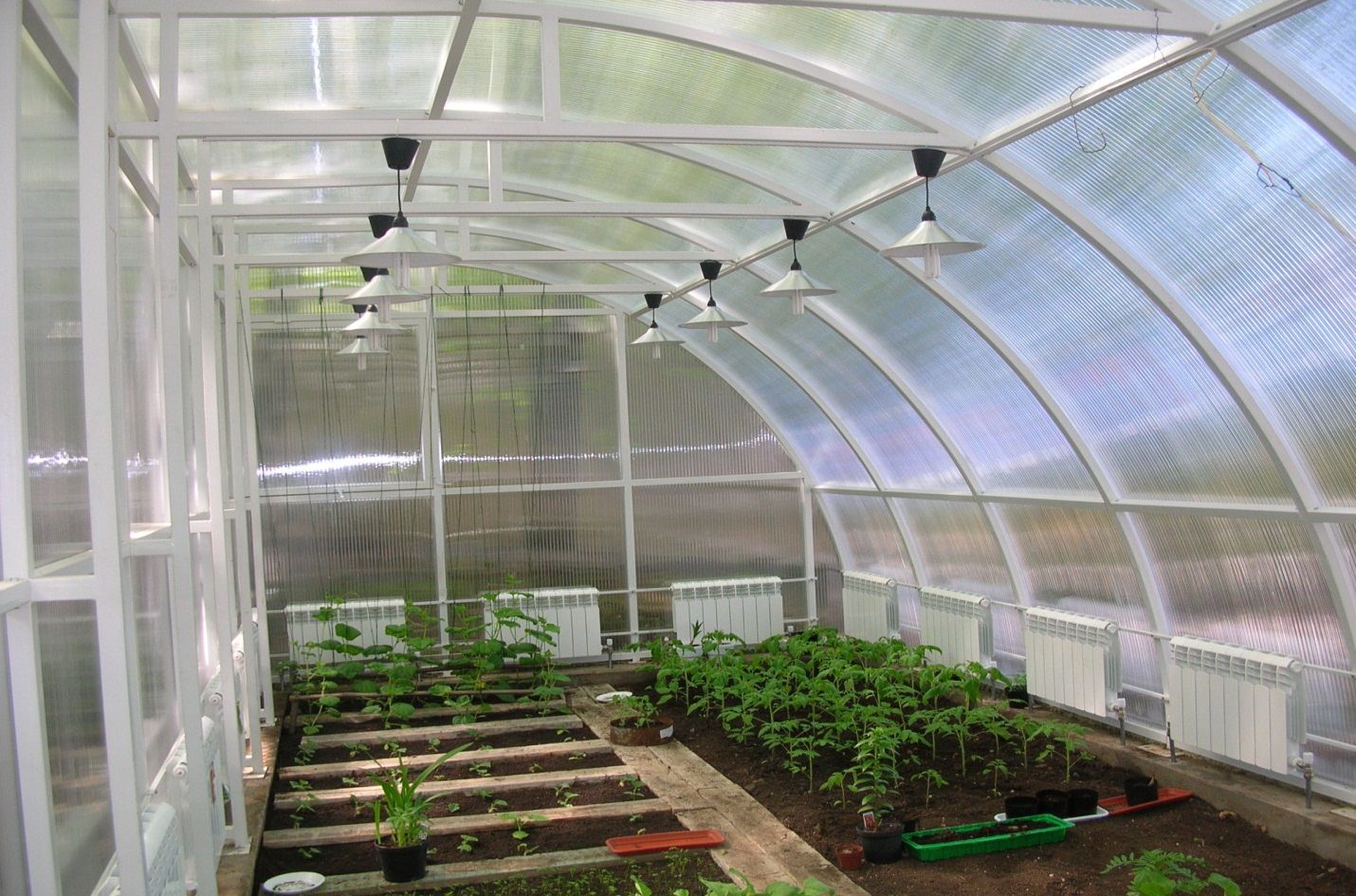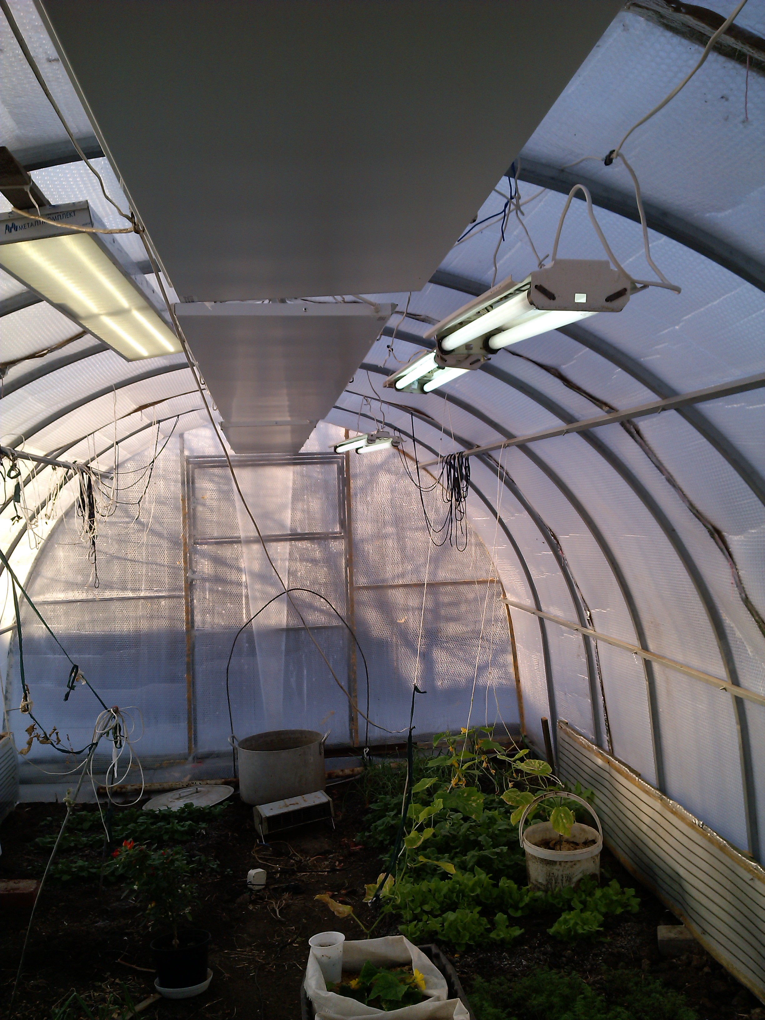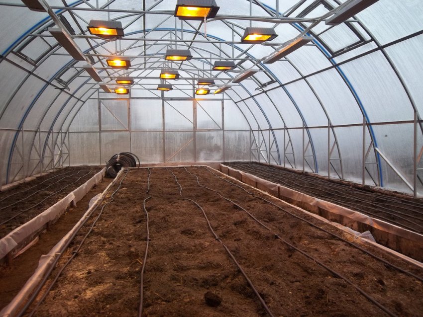 - Système d'éclairage. Comme la nuit tombe tôt en hiver, la serre est équipée d'un éclairage qui prolonge artificiellement la journée, nécessaire à la culture des légumes.