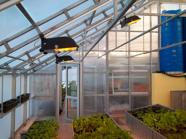 Avec chauffage infrarouge chauffage de serre d'hiver peut être effectuée par une lampe infrarouge et un radiateur infrarouge.