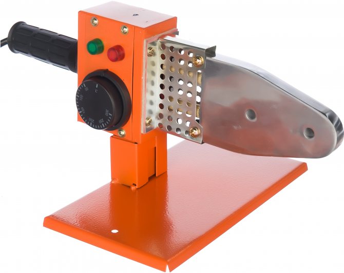 Une matrice est responsable du chauffage de la partie extérieure du tuyau, la seconde du chauffage de l'intérieur du raccord. Les deux éléments sont maintenus sur le fer à souder en même temps, puis rapidement assemblés. Le polypropylène refroidit, formant une connexion monobloc solide. C'est ainsi que toutes les sections du pipeline sont connectées. La plupart des modèles sont équipés d'un support, de sorte que le fer à souder peut être installé, en soudant sur le bureau. Cela réduit la charge sur les maîtres, offre un confort pendant le travail.