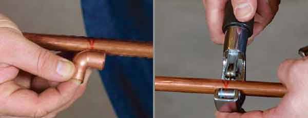 Attention: le bord du tuyau et le tuyau lui-même doivent être parfaitement réguliers et droits - la qualité de la fixation des pièces en dépendra, il est donc préférable d'utiliser un coupe-tube pour couper les tuyaux