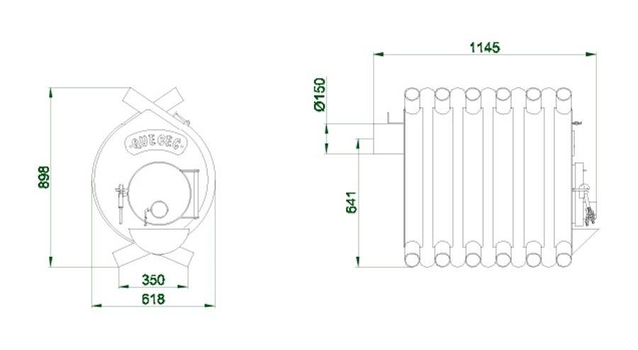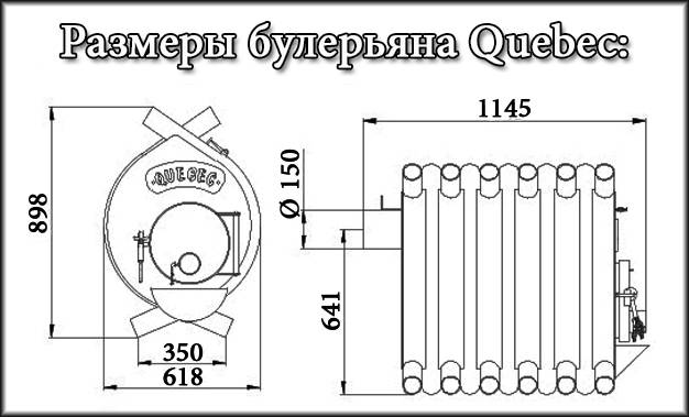 Les dimensions du four sont d'une grande importance. Dans le buleryan le plus court et le plus petit (avec une longueur de 455 mm, une largeur de 620 mm, une hauteur de 555 mm), respectivement, la chambre de combustion est petite, il n'y a donc pas beaucoup de place pour le bois de chauffage.