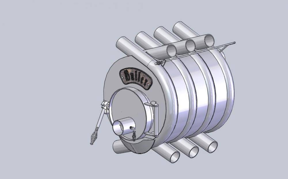 Le four est en métal. L'appareil de Buleryan comprend un convecteur composé de tuyaux de grand diamètre, une trappe pour le chargement du carburant, des tuyaux d'injection et des amortisseurs.