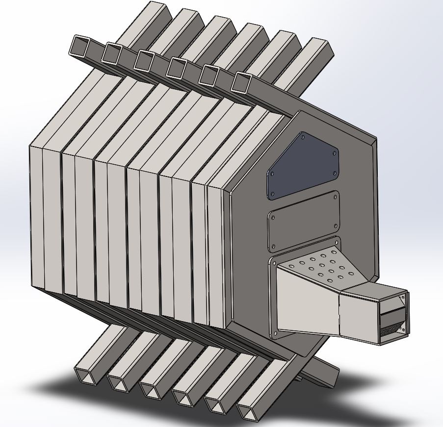 Sur les huit tuyaux, le cadre doit être soudé en plaçant une cloison entre eux. Pour elle, il est préférable d'utiliser une feuille de métal d'une épaisseur d'au moins 6 mm. À l'aide de bandes découpées dans de la tôle, nous comblons tous les espaces entre les tuyaux. Pour cela, le soudage est utilisé. Grâce à de telles actions, nous créons le corps du four lui-même. Astuce : afin de découper au plus juste les cloisons entre les tuyaux, il est préférable d'utiliser des patrons en carton ou tout autre matériau de cintrage.