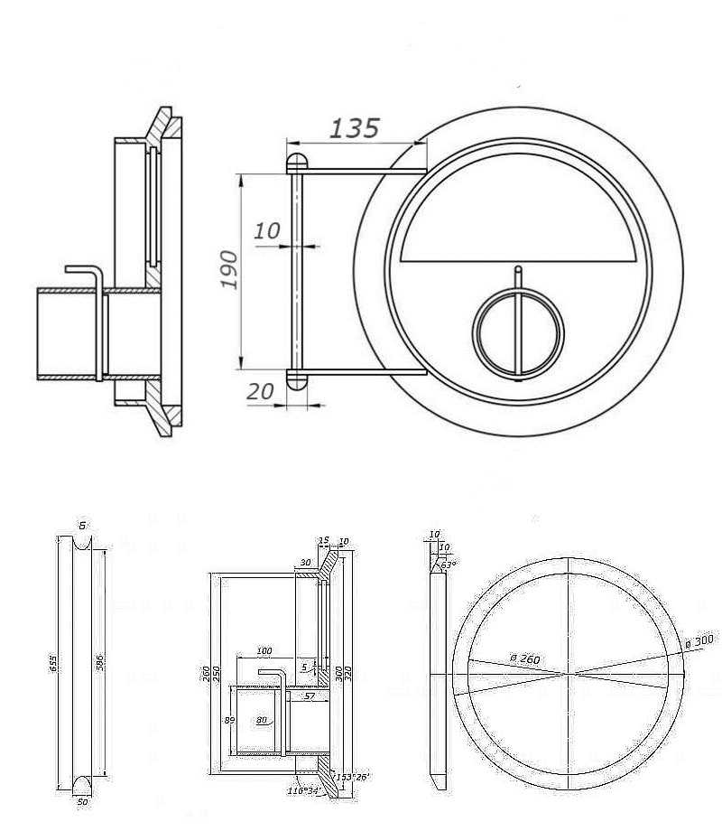 Eh bien, pour éliminer la fumée du tuyau, un amortisseur spécial doit être fabriqué. Au fait, avec lui, vous pouvez également régler la force de traction. Dans le même temps, un amortisseur vierge est installé sur le ventilateur situé sur la porte d'entrée.