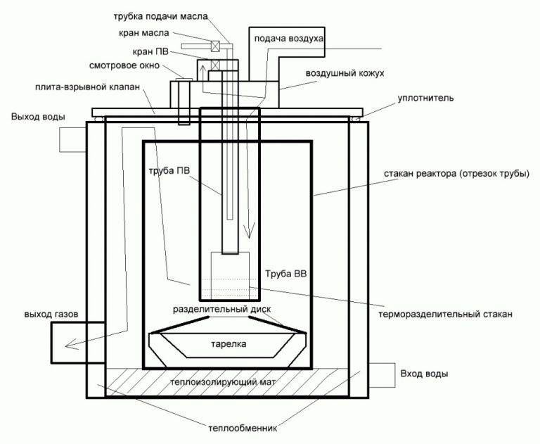 La combustion du combustible se fera par étapes. Tout d'abord, le carburant brûle dans le premier compartiment à une température modérée. Dans le second, il y aura combustion de produits mélangés à l'air, qui ont été obtenus grâce à la combustion d'huiles usées. La température dans le deuxième compartiment sera d'environ 800 degrés.