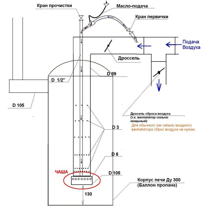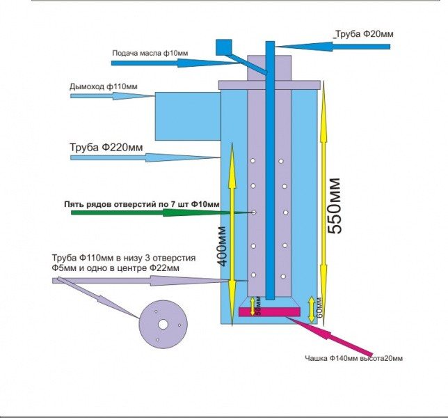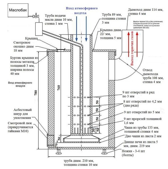 Poêle à mazout à faire soi-même: schéma, appareil, dessins d'un poêle à mazout