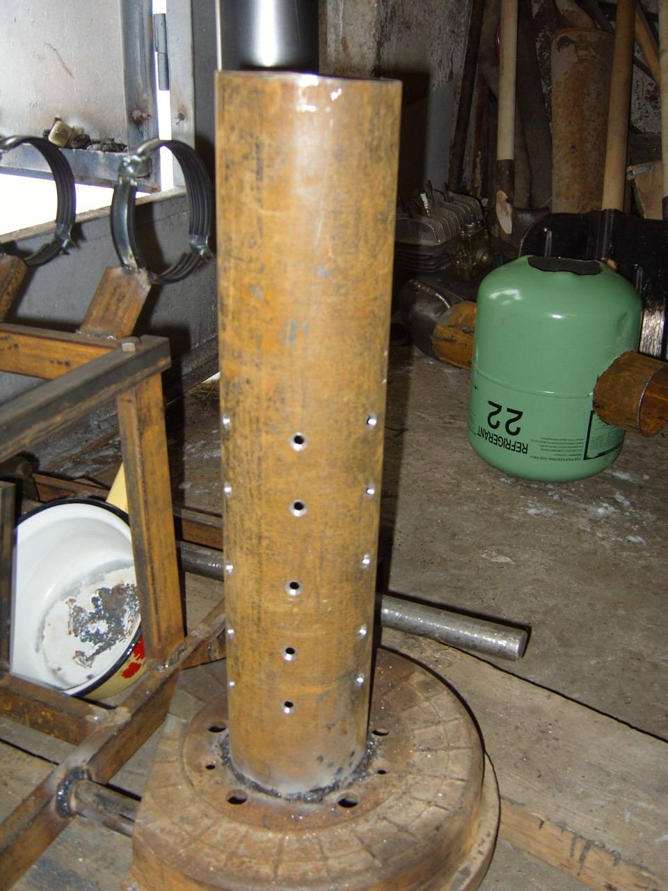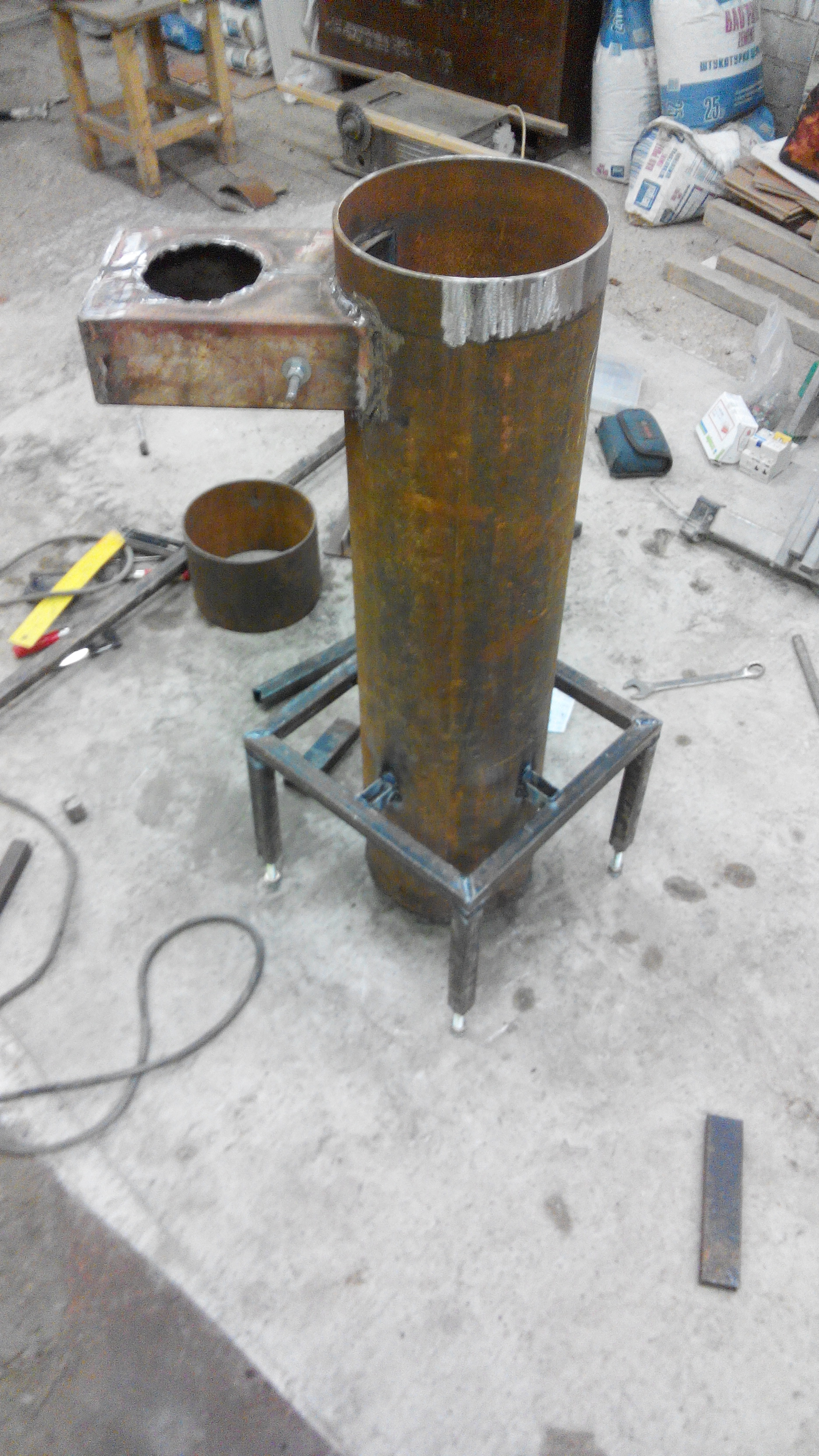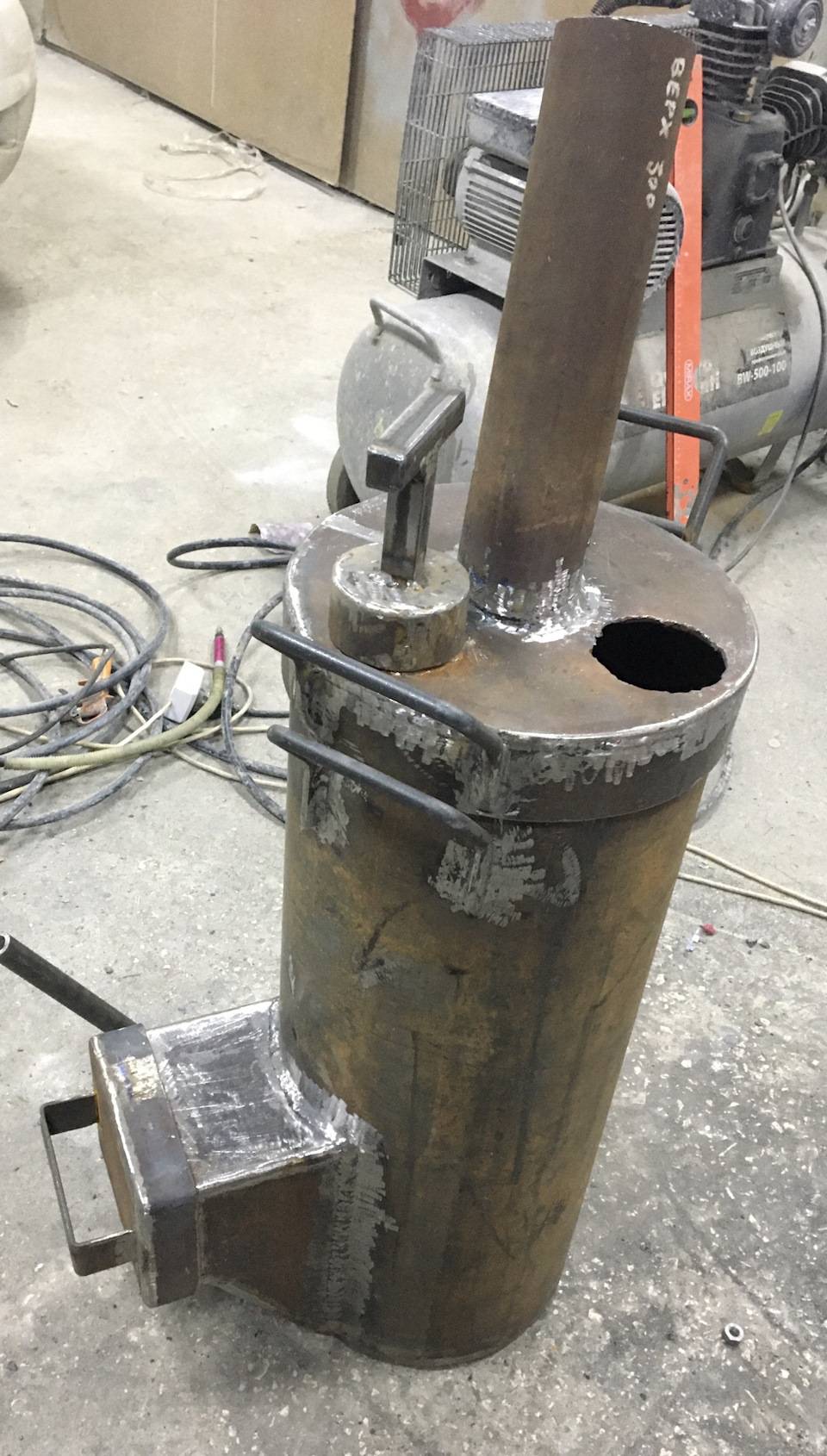 • Un morceau de tuyau est soudé sur la chambre de combustion, qui servira de chauffage. La hauteur du segment est de 30-35 cm.
