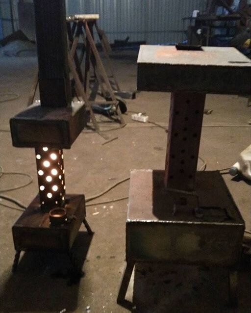 Les poêles miniers peuvent être fabriqués dans n'importe quelle forme et taille. En règle générale, la tôle, les garnitures de tuyaux ou les bouteilles d'oxygène usagées sont utilisées pour les fabriquer de leurs propres mains. Quelques croquis avec des explications sont donnés ci-dessous, et ici vous pouvez apprendre à fabriquer un brûleur minier à partir d'un chalumeau.