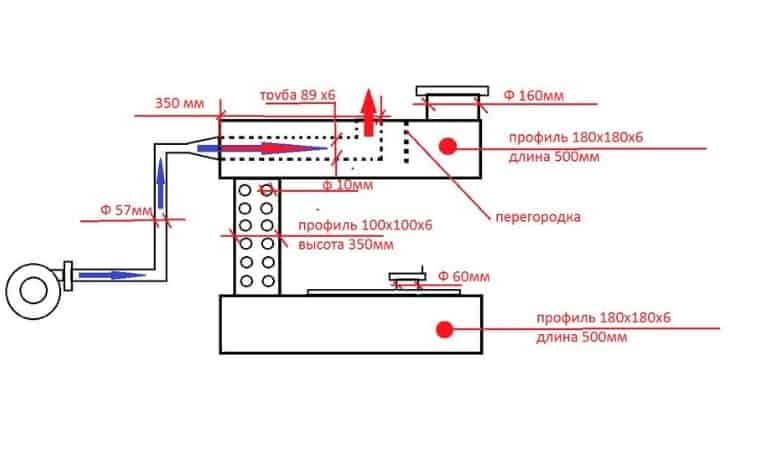 Pour la fabrication du four de leurs propres mains, ils utilisent un tube profilé de section carrée 180x180 mm et 100x100 mm. Diffère dans les tailles compactes et la simplicité de production. La surface du four peut être utilisée comme surface de cuisson.