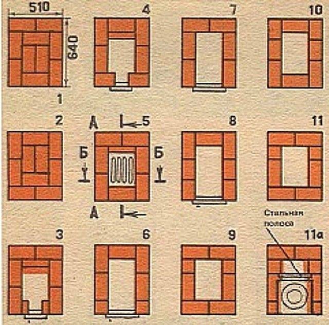 Il existe plusieurs méthodes connues pour construire un foyer fixe pour un bain en briques. Ils diffèrent dans la manière dont les produits de combustion sont retirés du four.