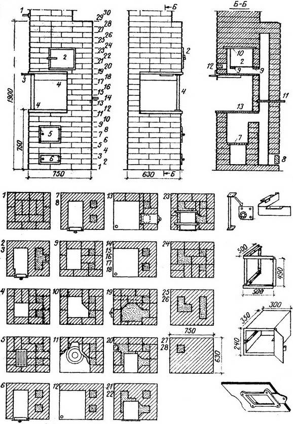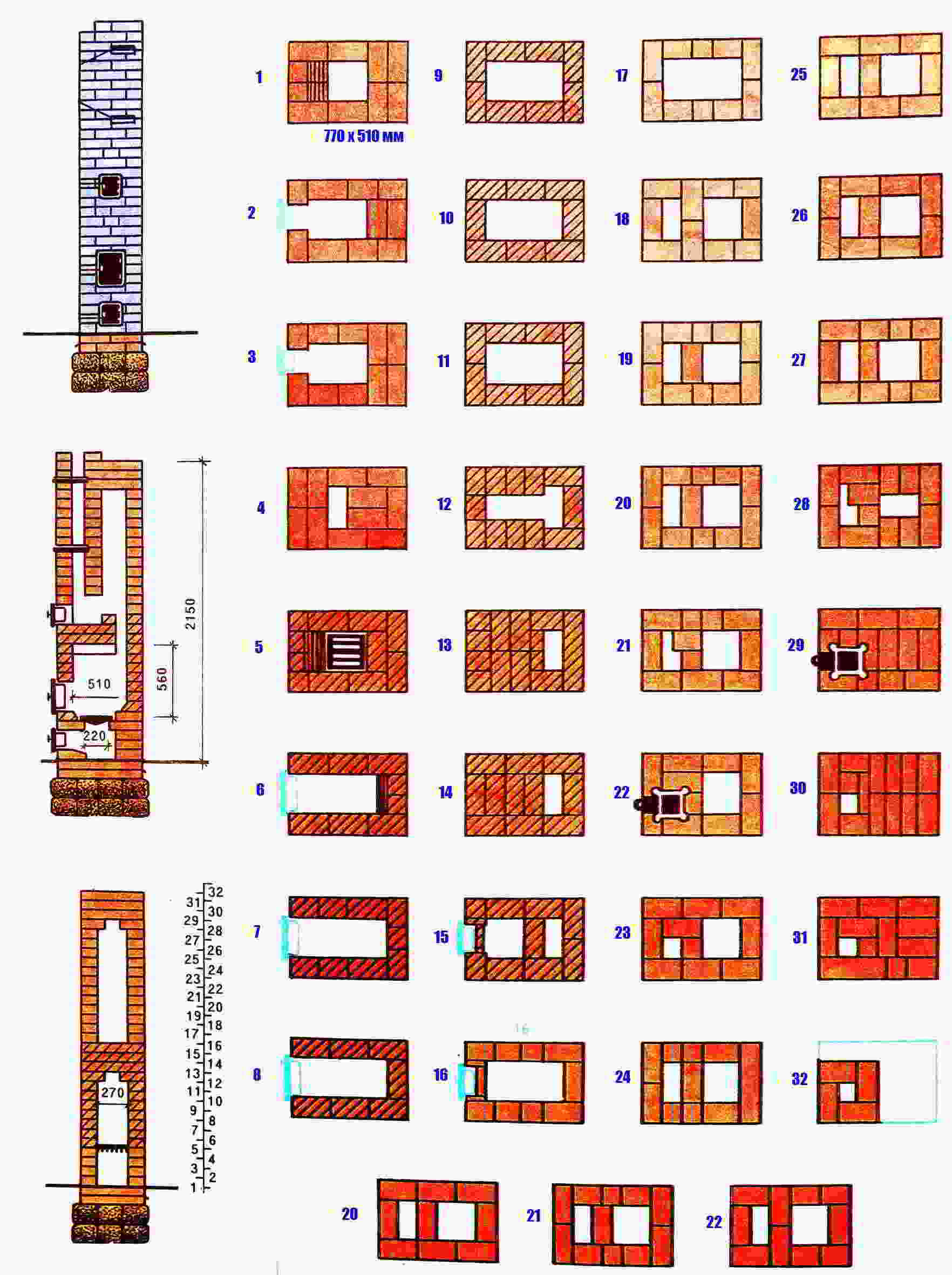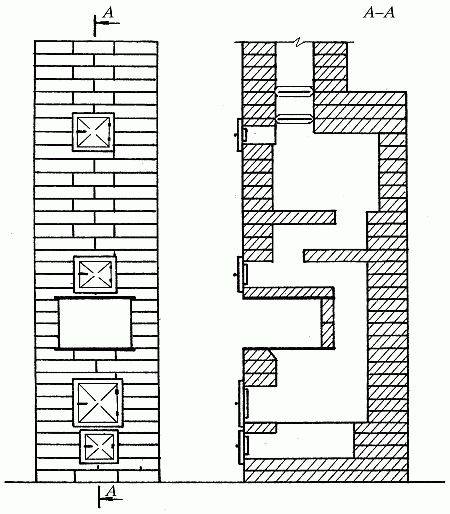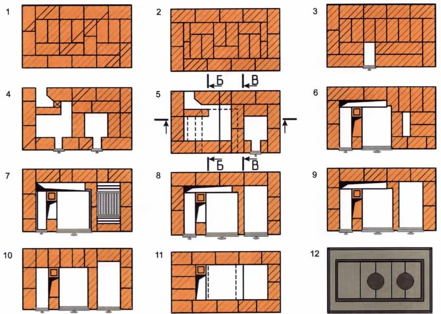 Le début de la cheminée est formé dans la dixième rangée. Il y aura un endroit pour attacher un tuyau en fer. Dans la onzième rangée, une soupape de cheminée est installée. À ce stade, des instructions étape par étape vous seront utiles - comment plier le poêle de vos propres mains, ce qui vous aidera à ne pas vous perdre dans les détails.