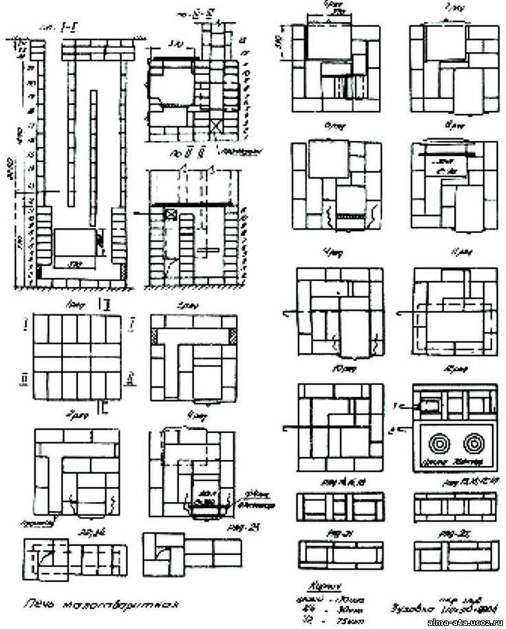 Les petits fours à briques sont conçus pour chauffer des maisons d'une superficie maximale de 50 à 60 mètres carrés. M.En fonction de la conception de la fournaise prise comme échantillon, du combustible sur lequel elle fonctionne, le transfert de chaleur vers la pièce dépendra. Le modèle le plus courant de poêle est un poêle en brique (avec un foyer et une plaque de cuisson en fonte), situé à l'intérieur de la maison de sorte que la face avant se trouve dans la cuisine, et la paroi arrière du poêle complète le mur de séparation entre Les chambres. Certains fours ont un four. Un tel four en brique peut très bien ne pas avoir de plaque de cuisson ou de four, mais ne servir qu'à chauffer les locaux. Dans les fours, des registres dans la cheminée (vues) sont nécessairement fournis.