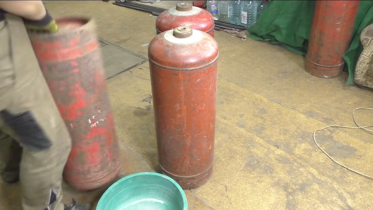- Un trou est soudé, une valve est vissée, une poignée confortable est ajustée.