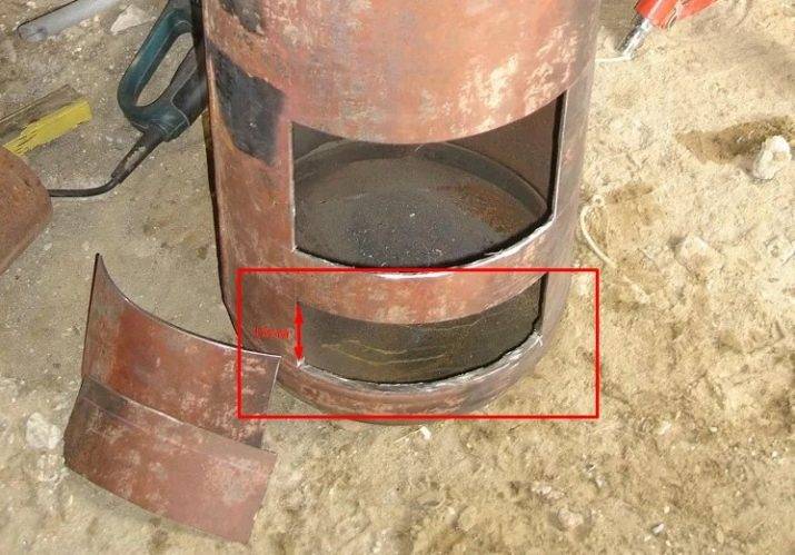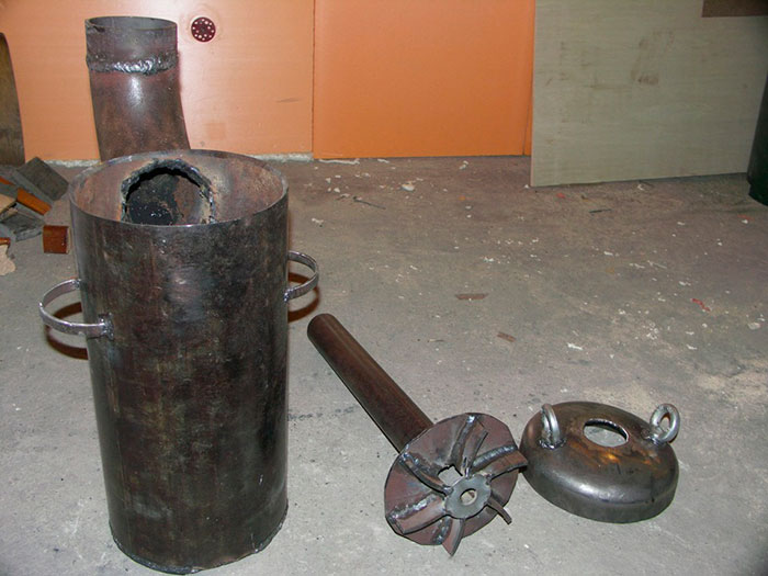 Le principe de fabrication est simple : des portes sont construites pour couvrir le ventilateur et la chambre de combustion, un trou est fait pour la cheminée, les produits de combustion doivent quitter la pièce en temps voulu, sinon vous pouvez inhaler du monoxyde de carbone.