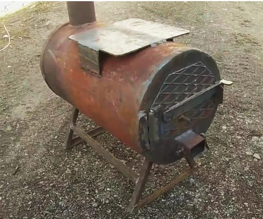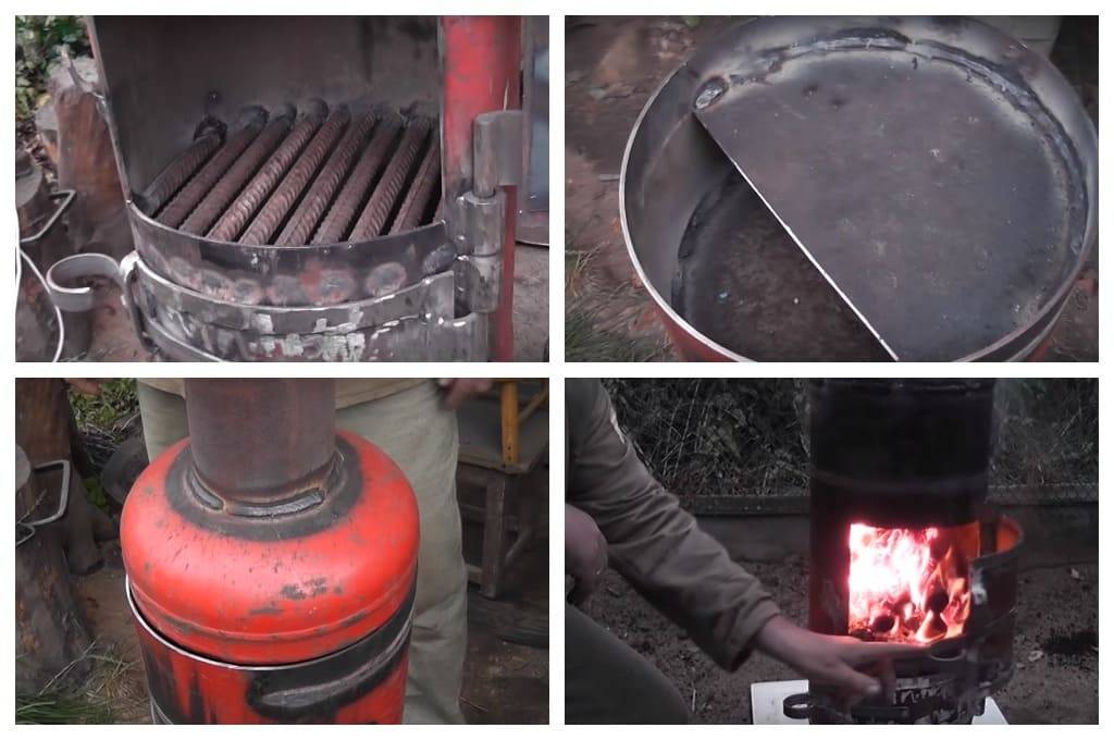 Si vous le souhaitez, la partie supérieure du poêle à ventre vertical d'une ancienne bouteille de gaz peut être transformée en une plaque de cuisson de taille modeste