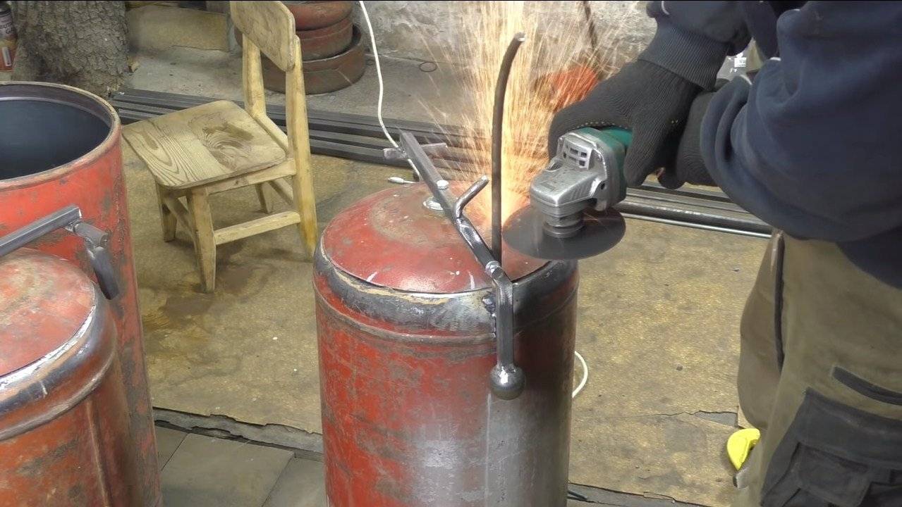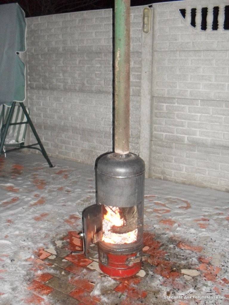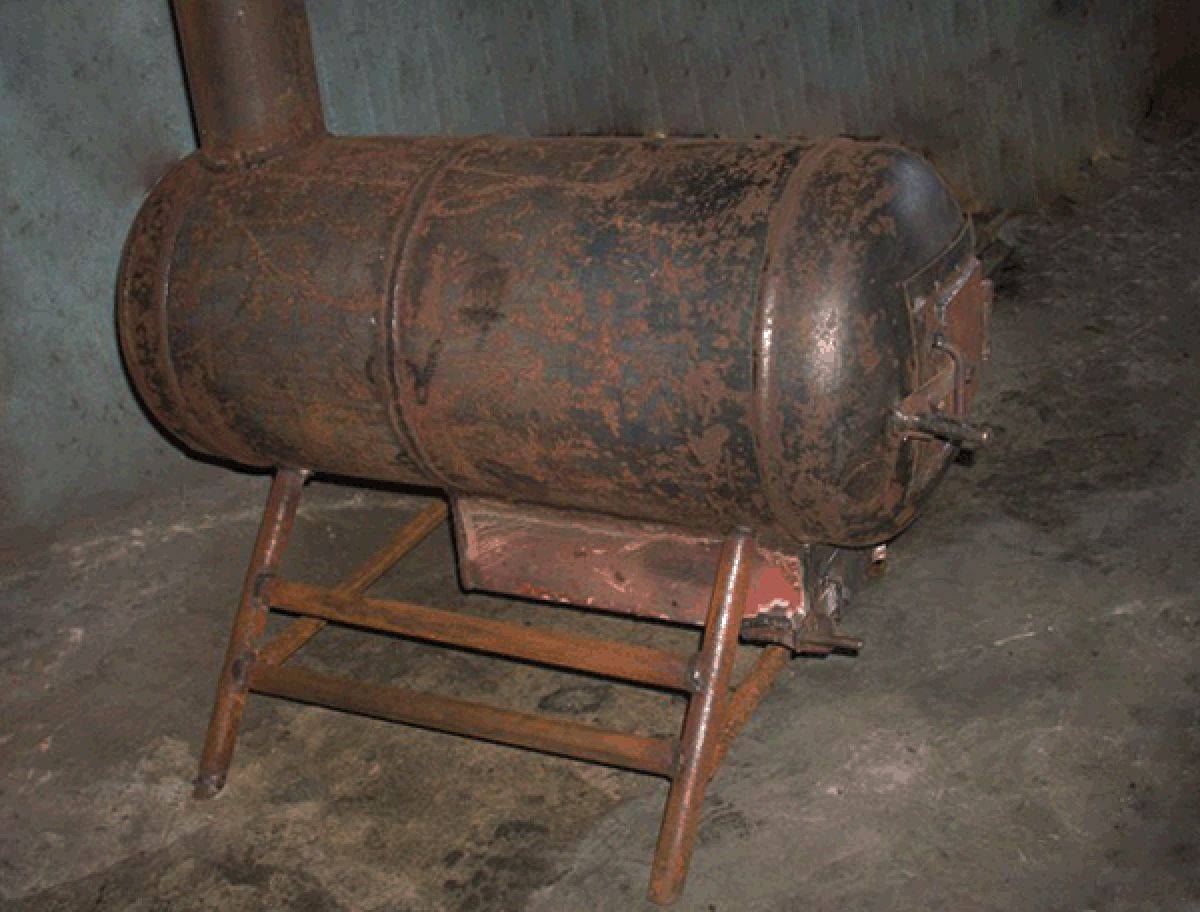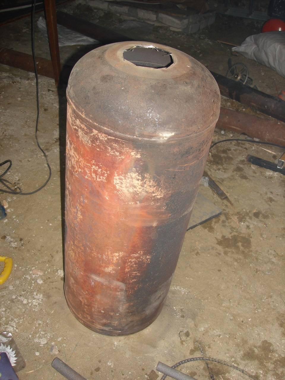 Le poêle à ventre est une chambre de combustion en métal épais avec une porte de chargement, une cheminée, une grille et un ventilateur. Vous pouvez utiliser une vieille bouteille de gaz comme logement