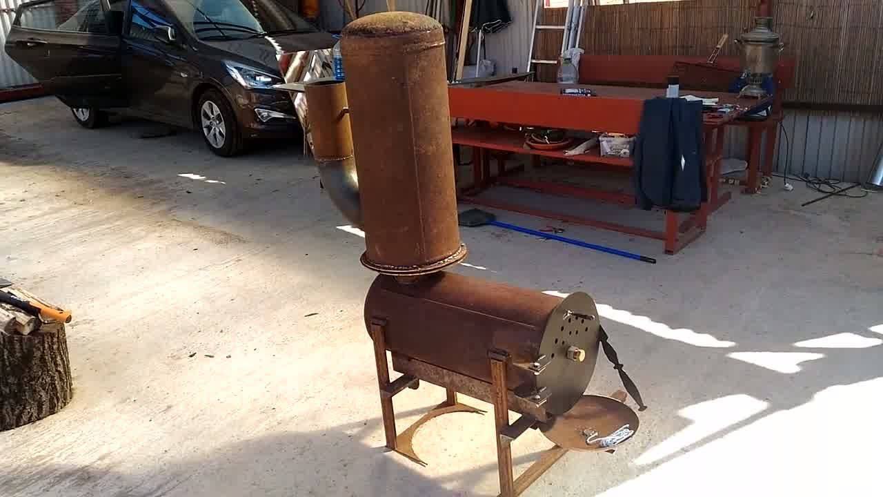 - Coupez un trou à la surface, soudez-y un tuyau, ce sera une cheminée.