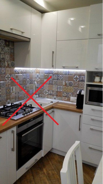Deuxièmement, le poêle et l'évier peuvent être déplacés vers d'autres locaux non résidentiels - un couloir ou un garde-manger. Vous ne pouvez pas aller aux toilettes ni aux toilettes. On pense que vous aggraverez ainsi vos conditions de vie - placez la cuisine sous la zone humide des voisins d'en haut.