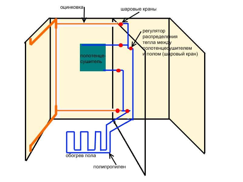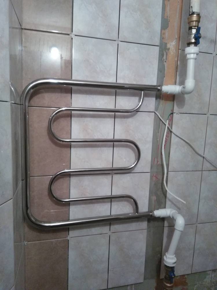 8. Connectez le porte-serviettes chauffant au-dessus de la salle de bain à la canalisation en soudant ou en utilisant des fils et des robinets. La deuxième méthode n'est pas recommandée si vous avez l'intention d'utiliser une finition décorative. Parce que cette connexion est étanche. Le porte-serviettes chauffant dans la salle de bain doit contenir un robinet Mayevsky à travers lequel l'air descend.