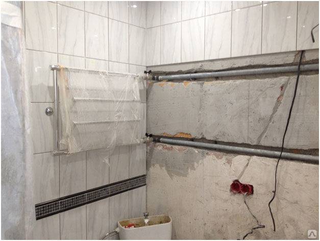 1. Après avoir retiré l'ancien sèche-serviettes, la colonne montante de l'appartement et les tuyaux de tout le câblage de l'appartement sont remplacés par des tuyaux en polypropylène. Leur diamètre est généralement de 25 mm 2. Aux extrémités des tuyaux coupés, le point de coupe est nettoyé afin qu'ils ne présentent ni bavures ni traces de peinture ancienne.