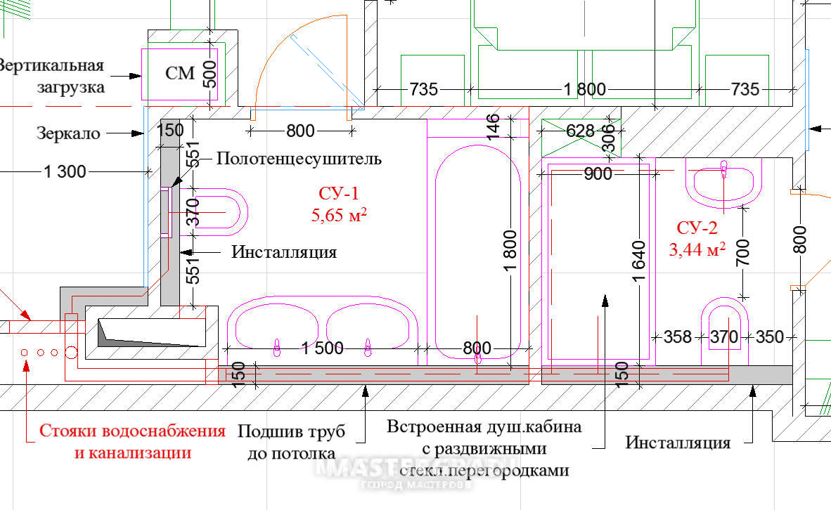Deuxièmement, il est interdit de modifier la taille de la salle de bain au détriment de la pièce adjacente, cela ne s'applique pas à la combinaison d'une salle de bain et d'un WC. S'il n'est pas possible d'éviter une telle combinaison, alors certains travaux doivent être effectués qui accompagnent ce processus.
