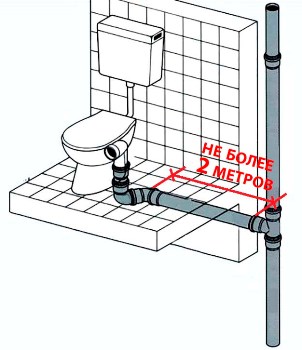 Une augmentation de la longueur du tuyau d'égout peut provoquer la formation d'embouteillages et de blocages. Selon les normes SNiP, la distance entre le dispositif de vidange et la sortie d'égout ne doit pas dépasser 1,5 mètre.