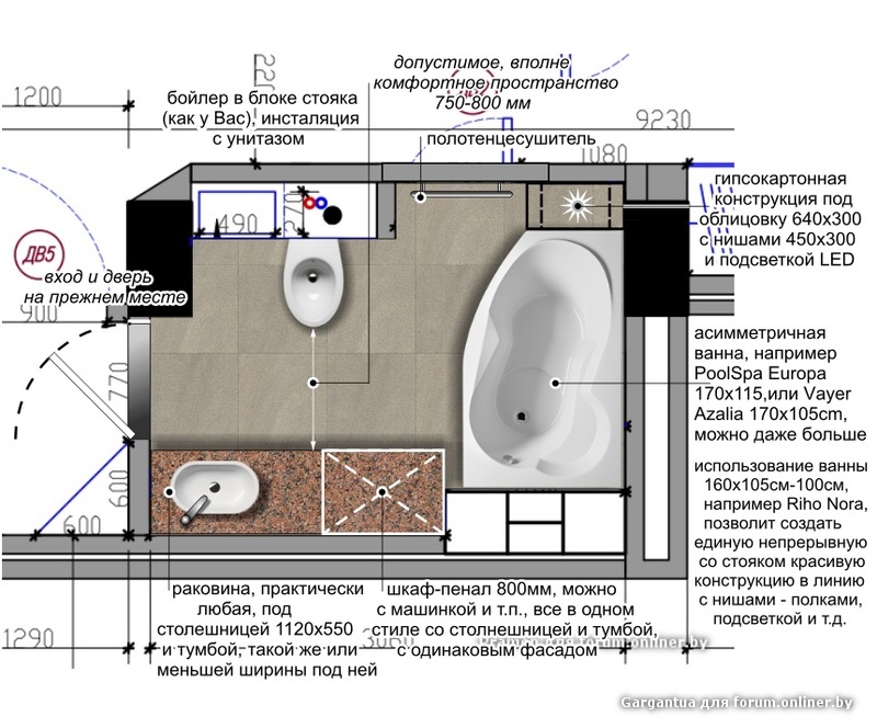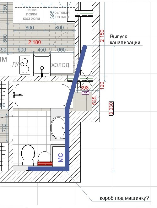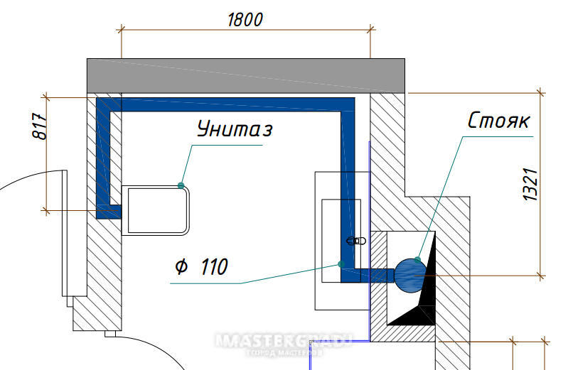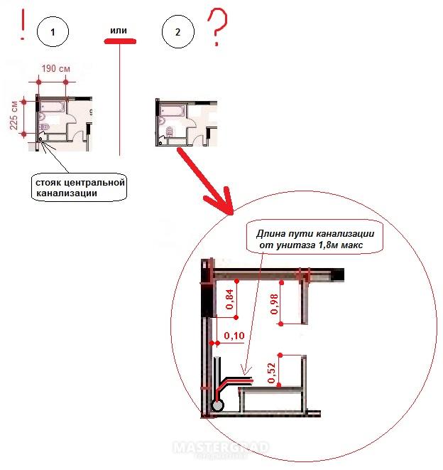 Souvent, seul le déplacement de l'équipement de plomberie à une certaine distance de la colonne montante d'égout peut résoudre le problème d'optimisation de l'espace dans la salle de bain.