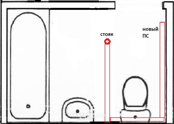 2. Transfert d'équipements de plomberie sur une distance considérable. Dans le cas où la distance sur laquelle la cuvette des toilettes est transférée dépasse la longueur de l'ondulation, il est nécessaire de refaire l'égout.