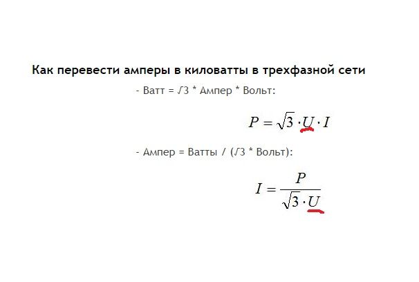 Amp \u003d √3 x Volt ou I \u003d P / √3 x U