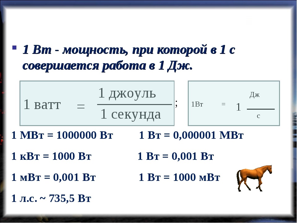 où: P - puissance, W (watt);
