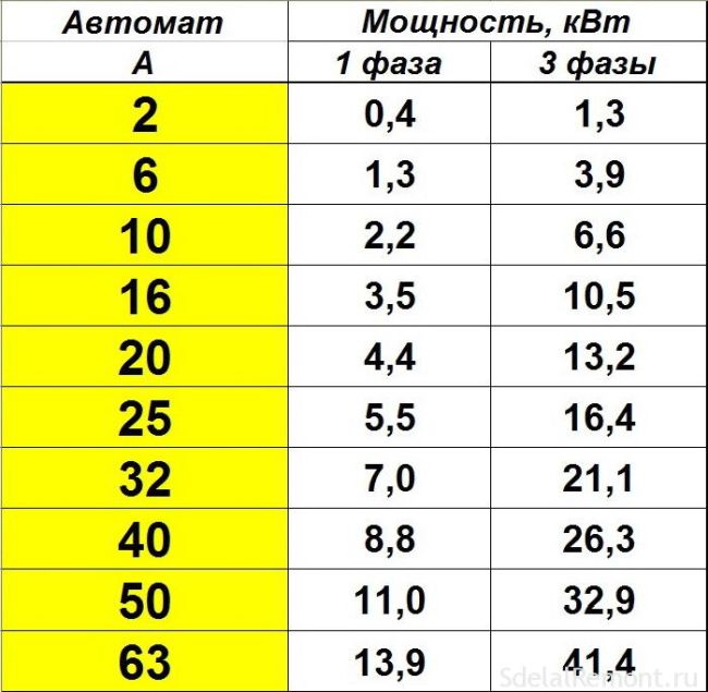 Les spécialistes utilisent une règle confidentielle pour les circuits à courant alternatif: l'intensité du courant est divisée par deux, si vous devez calculer approximativement la puissance lors du processus de sélection des ballasts. Ils agissent également lors du calcul du diamètre des conducteurs pour de tels circuits.