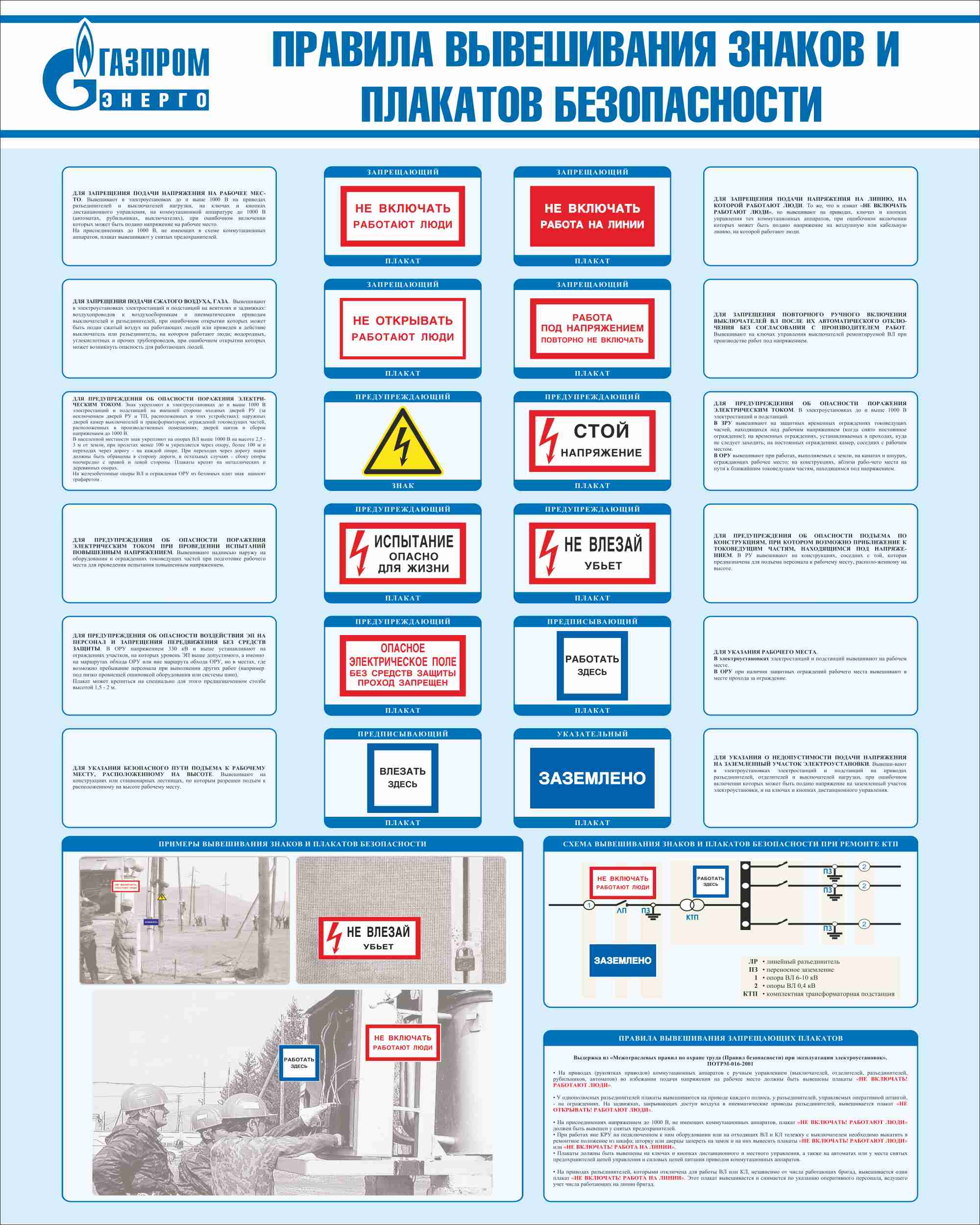 L'utilisation d'équipements de protection est une exigence de sécurité nécessaire, grâce à laquelle la santé des personnes est préservée, le risque de choc électrique est éliminé.Des affiches lumineuses placées aux bons endroits permettent de comprendre rapidement ce qui peut ou ne peut pas être fait, où travailler exactement, quoi faire exactement.