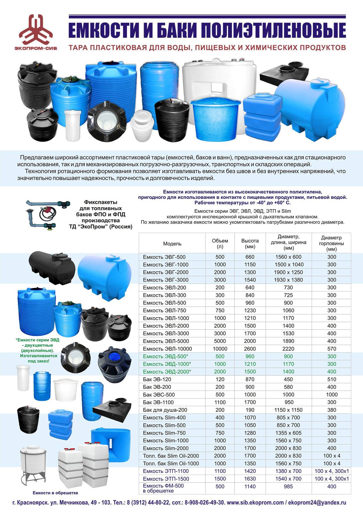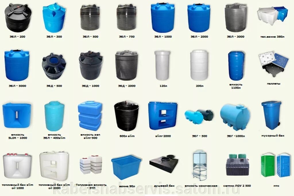 Les caisses et les formes de conteneurs de différentes séries sont fabriquées de telle manière qu'elles franchissent les portes. Les conteneurs optimaux pour stocker l'eau dans le pays sont la série EVL. Le volume des conteneurs est différent - 200l, 500l, 1000l. Ils peuvent être laissés à la campagne même en hiver, car ils résistent au gel.