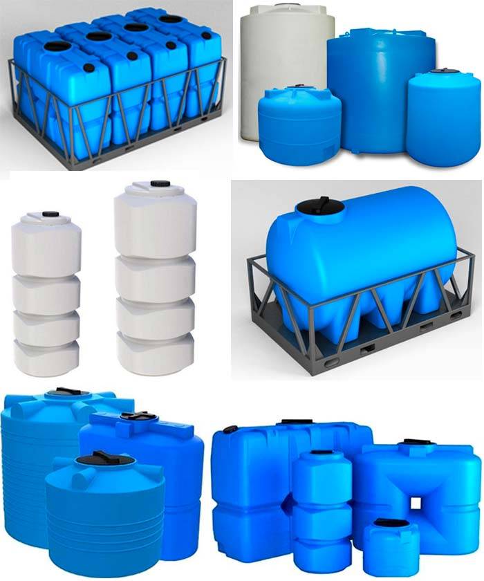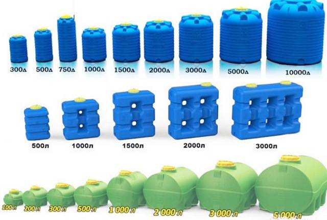 Des conteneurs d'un volume allant jusqu'à 5000 litres sont utilisés pour le transport de l'eau potable et d'un volume allant jusqu'à 2000 - pour la collecte et le stockage de l'eau de pluie. Ces réservoirs sont également largement utilisés dans l'industrie agricole. Les conteneurs carrés sont polyvalents car ils permettent d'économiser de l'espace dans les petits espaces. De tels réservoirs sont également utilisés dans de petits systèmes d'ingénierie, tels qu'une cabine de douche de campagne.