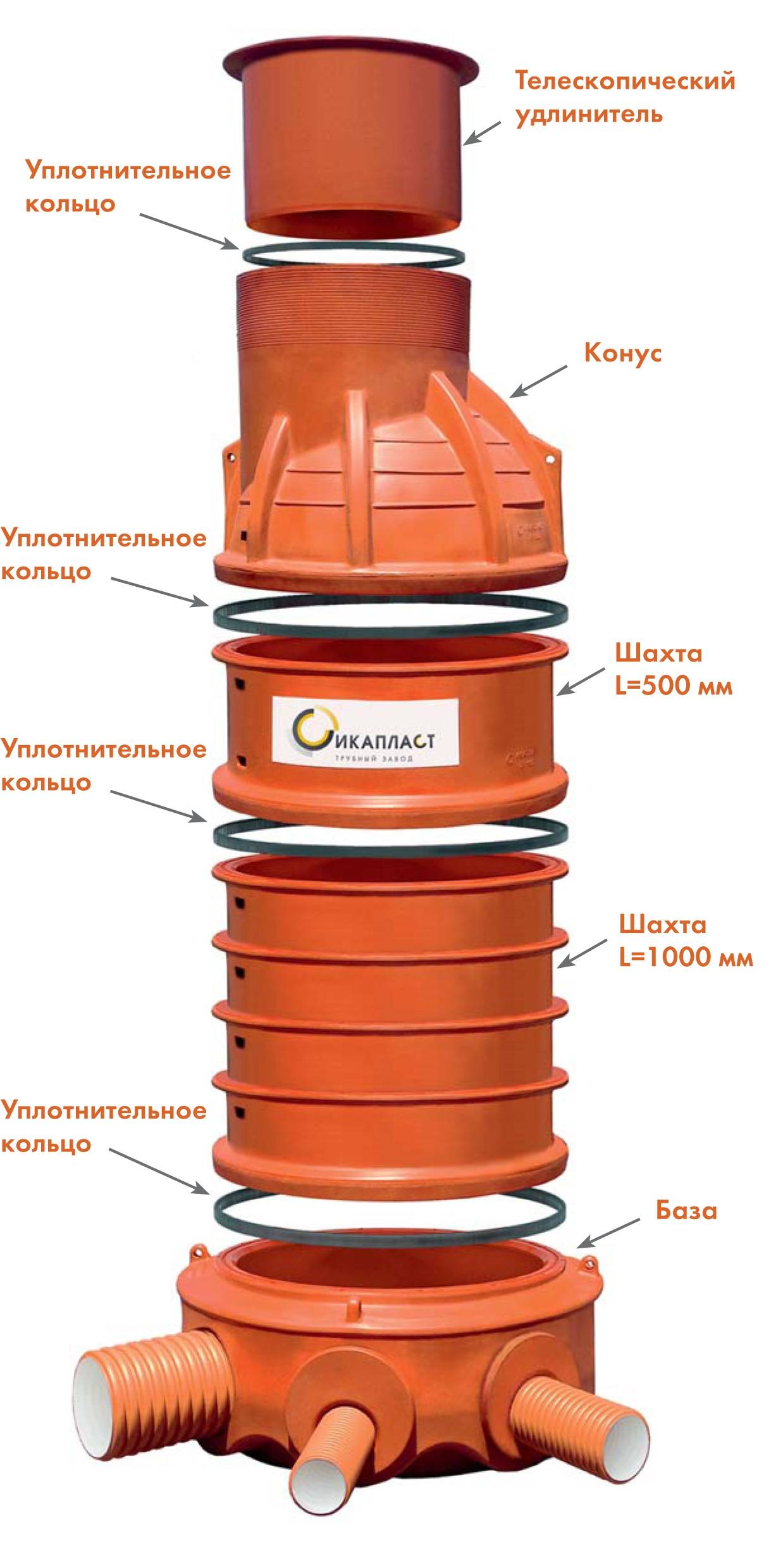 • surface extérieure et intérieure lisse du puits, ce qui garantit un haut niveau de fiabilité et d'étanchéité des raccordements, à la fois des tuyaux d'entrée et de sortie ;