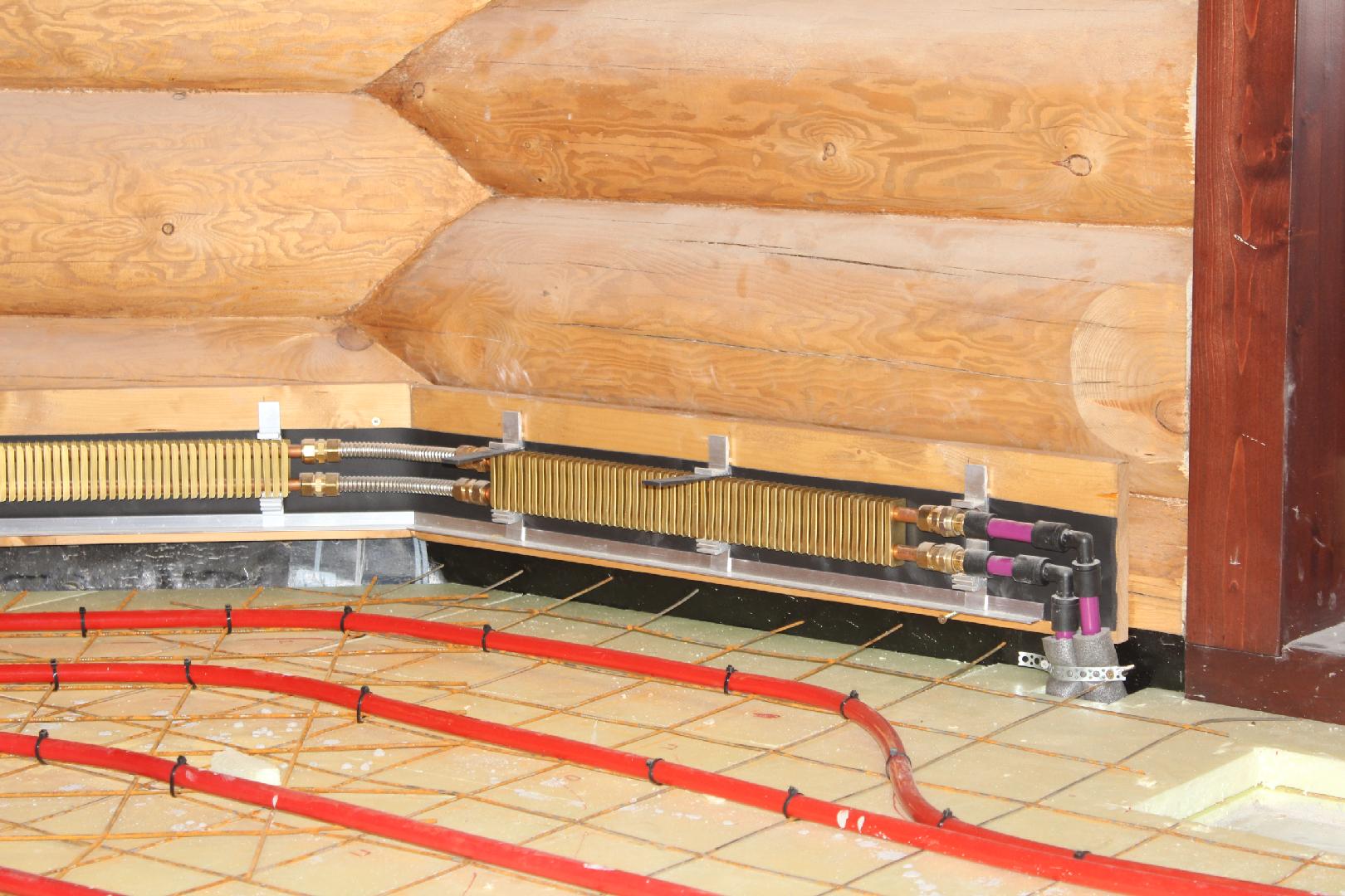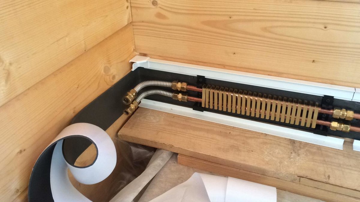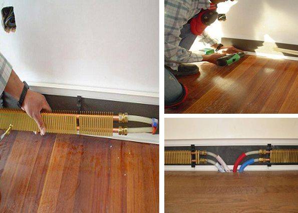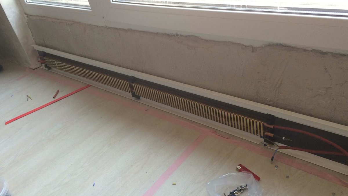 Lors de l'installation d'un chauffage par plinthe d'eau, les tuyaux sont généralement cachés dans le sol. Les poser le long des murs ne fonctionnera pas, car la place est occupée par des appareils de chauffage. Autrement dit, l'installation de plinthes à eau chaude n'est possible qu'au stade de la réparation - vous devrez surélever les sols.