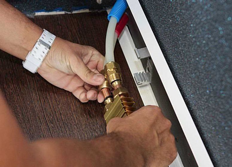 Le moyen le plus fiable de se connecter est tuyaux en cuivre soudés. Cette option convient également aux systèmes de chauffage central, car ces connexions peuvent supporter jusqu'à 30 bar. Le plus difficile est l'assemblage avec des raccords filetés: les dimensions et les distances entre les tubes et le mur sont petites, il est très peu pratique de travailler. Les conduites flexibles doivent être choisies fiables : le chauffage et l'eau chaude nécessitent une bonne qualité.