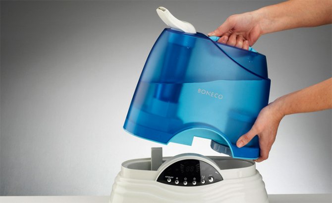 L'appareil à ultrasons est aujourd'hui considéré comme le plus cher, mais aussi le plus efficace. Consomme de l'électricité économiquement. Pour rendre l'air de la chambre des enfants vraiment utile, pour remplir l'humidificateur, vous devez utiliser l'eau: