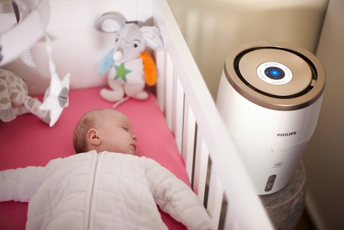 L'air sec dans une pièce peut être mortel pour le corps d'un enfant, il vaut donc la peine de mettre un humidificateur domestique dans la pièce.