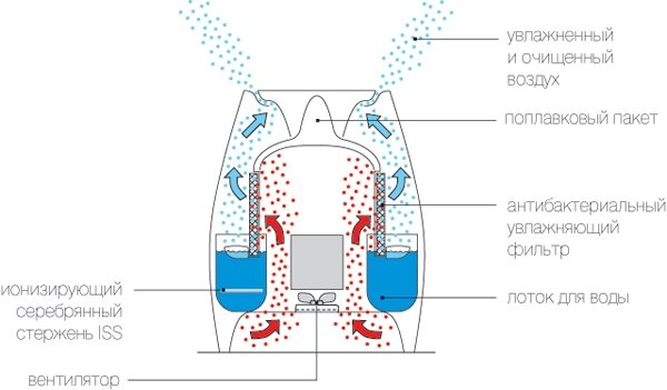 En règle générale, les nano-humidificateurs sont équipés d'une fonction de purification de l'air. Comment ça fonctionne? Tout est simple.L'air sale est forcé à l'intérieur à l'aide d'un ventilateur spécial, nettoyé et relâché - déjà nettoyé de la poussière et d'autres impuretés nocives.