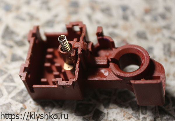 L'un des nombreux modèles d'allume-boutons pour cuisinières à gaz. Traditionnellement, un boîtier en plastique et un groupe de contact métallisé sont des conditions idéales pour la formation de jonctions d'oxyde. Cependant, il existe de meilleures conceptions, mais plus chères.
