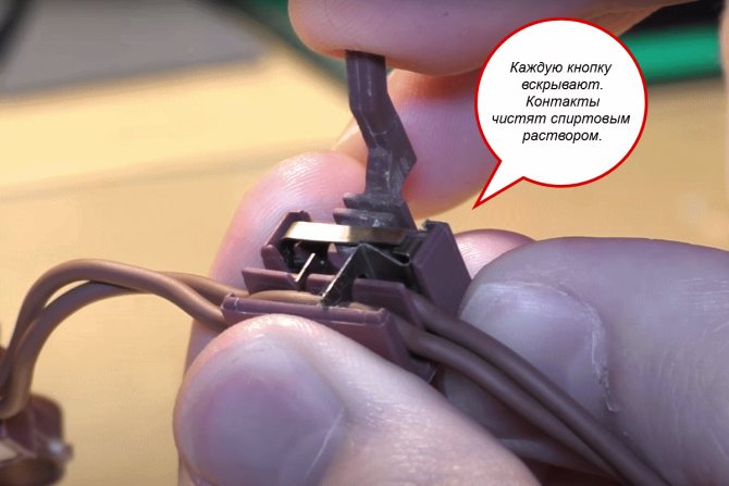 - Si les conducteurs sont intacts, les contacts sont normaux partout, le problème peut être dans le bouton. On le démonte, on le nettoie, on remet tout à sa place.